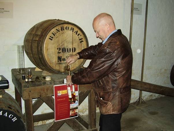 Onsdagen 29 november började med ett besök i Gordon & MacPhail´s lagerhus i Elgin. Här finns 7000 fat med whisky av olika åldrar. Det äldsta fatet jag såg var Mortlach 1938. Från 1940-talet fanns ett flertal, bl.a. Macallan, Glenlivet och Glen Grant. För en sann whiskyälskare var det verkligen ett besök i en skattkammare. Gordon & MacPhail är den ojämförligt största Independent Bottler i Skottland. Till skillnad från de flesta (alla?) andra Independent Bottler köper man i stort sett endast nytillverkad sprit som man låter fylla i egna utvalda fat. Det betyder att man har samma kontroll över lagringen som destillerierna själva. Därefter blev det ett kortare besök hos Speyside Cooperage. Tunnbinderi är ett verkligt hantverk. Och vilket arbetstempo! Man arbetade på ackord, och när jag såg hur de arbetade gick mina tankar till Kalle Anka på julafton och Tomteverkstan. En upplevelse.